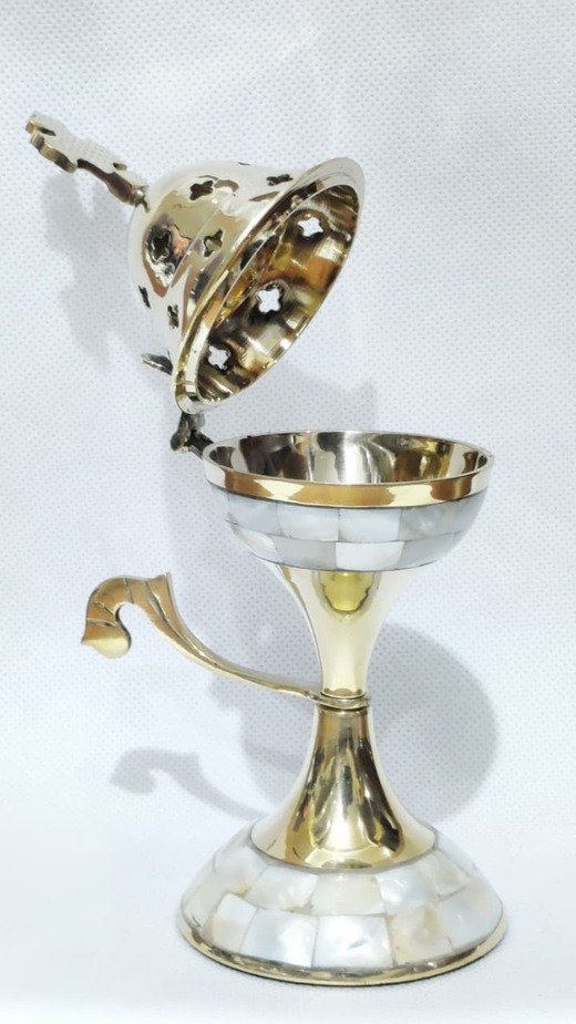 - Elegant Gold-Toned Metal Orthodox Censer for Home Altar, Church Use, or Spiritual Rituals