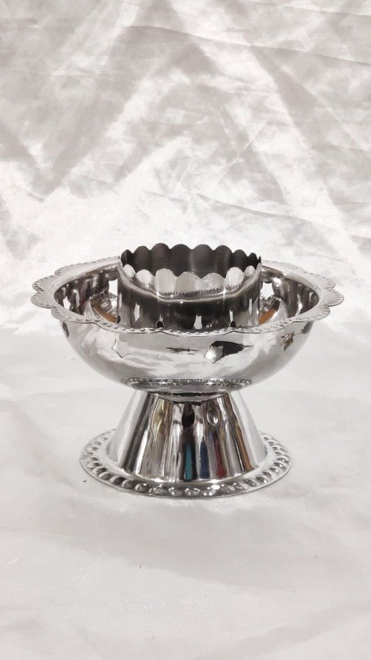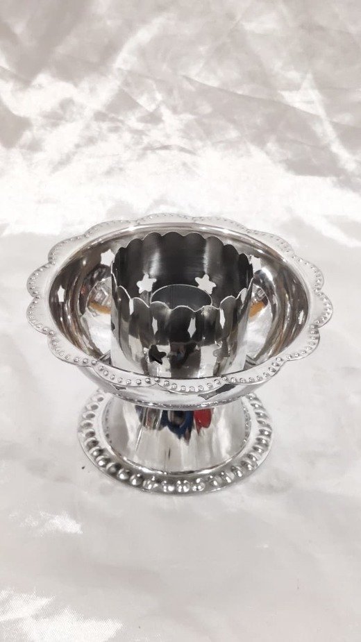 - This elegant steel silver plated candle stand will make your prayer room/table more divine